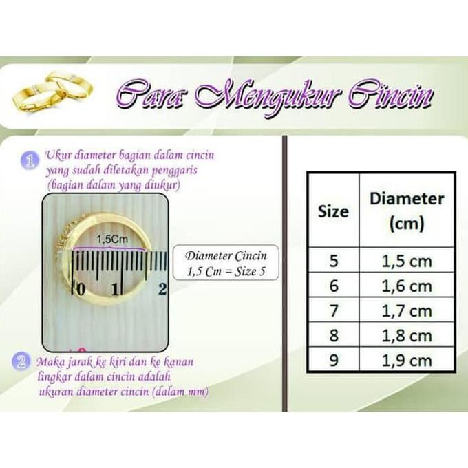 Ukur diameter garis tengah cincin. Bagaimana cara mengukur cincin kawin mengukur lingkar jari manis untuk cincin pasangan sangatlah mudah kami akan memberikan cara mudah hasilnya dalam satuan cm. Jika saiz jari adalah 46 cm maka saiz cincin yang sesuai dibeli adalah saiz 6.